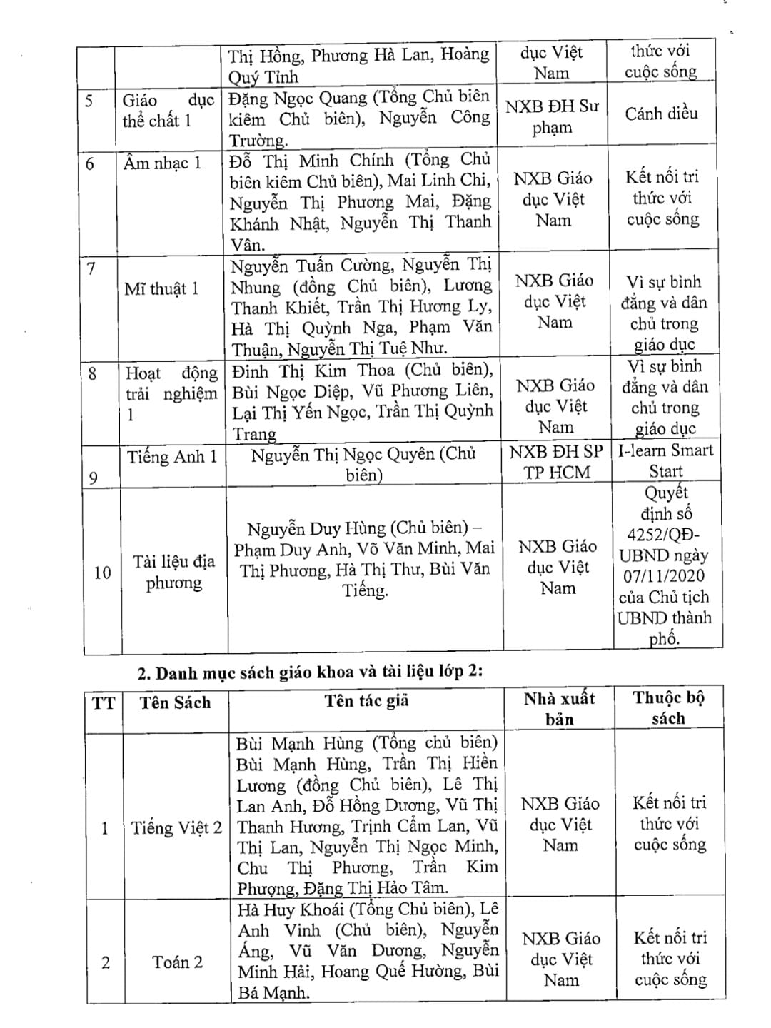 DANH MỤC SÁCH GIÁO KHOA LỚP 1 NĂM HỌC 2021-2022